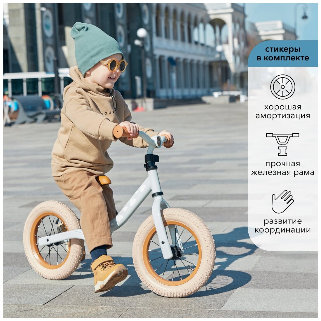 Беговел детский Happy Baby FRANKY, от 2 лет, рост 90-120, с наклейками, бежевый