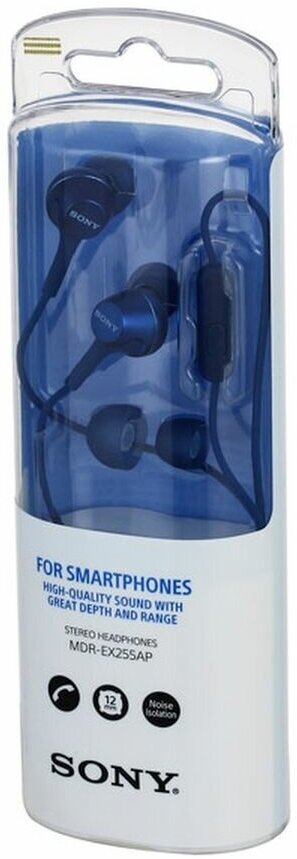 Купить MDR-EX255AP L наушники Sony с микрофоном, цвет синий