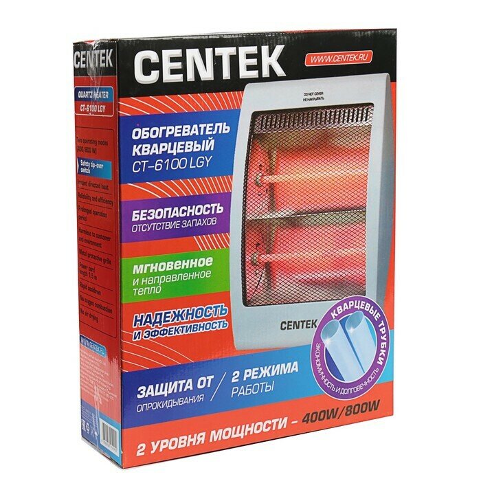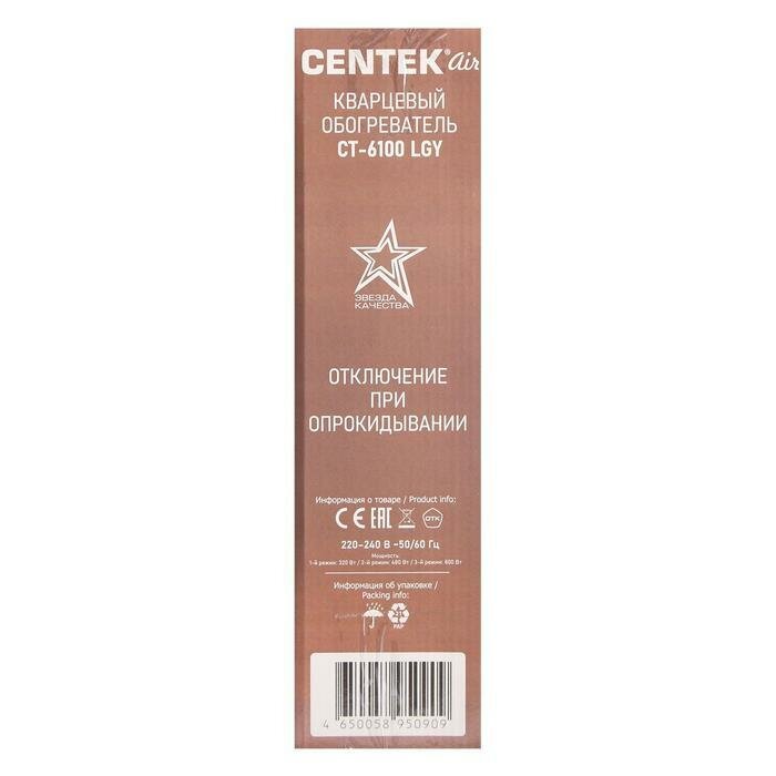 Centek Обогреватель кварцевый CT-6100 Lgy, 2 уровня мощности 400 Вт/800 Вт CT-6100 LGY .