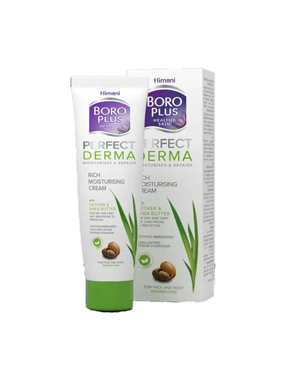 Боро Плюс Крем для тела Perfect Derma и лица Интенсивный увлажняющий с ветивером и маслом ши, 80 мл