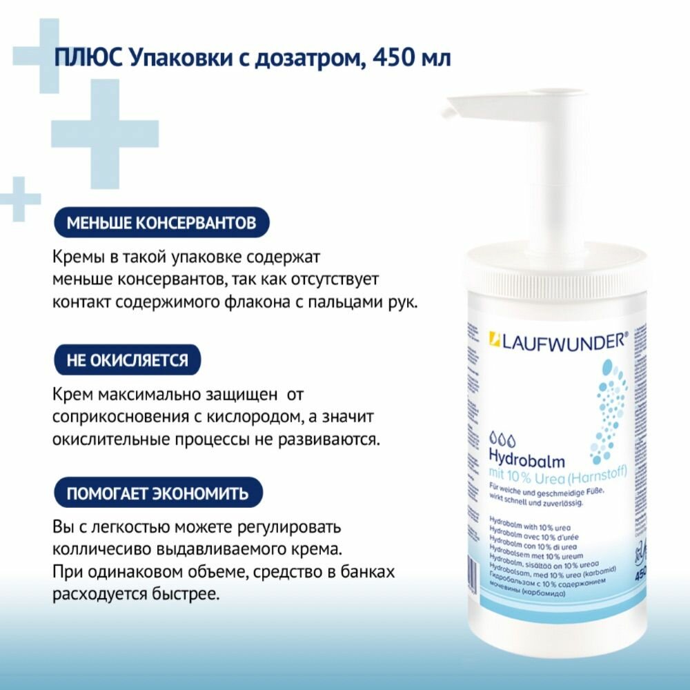 Купить Laufwunder Hydrobalm Urea Бальзам для ног с 10% содержанием мочевины, увлажняющий крем для ног, 450 мл с дозатором