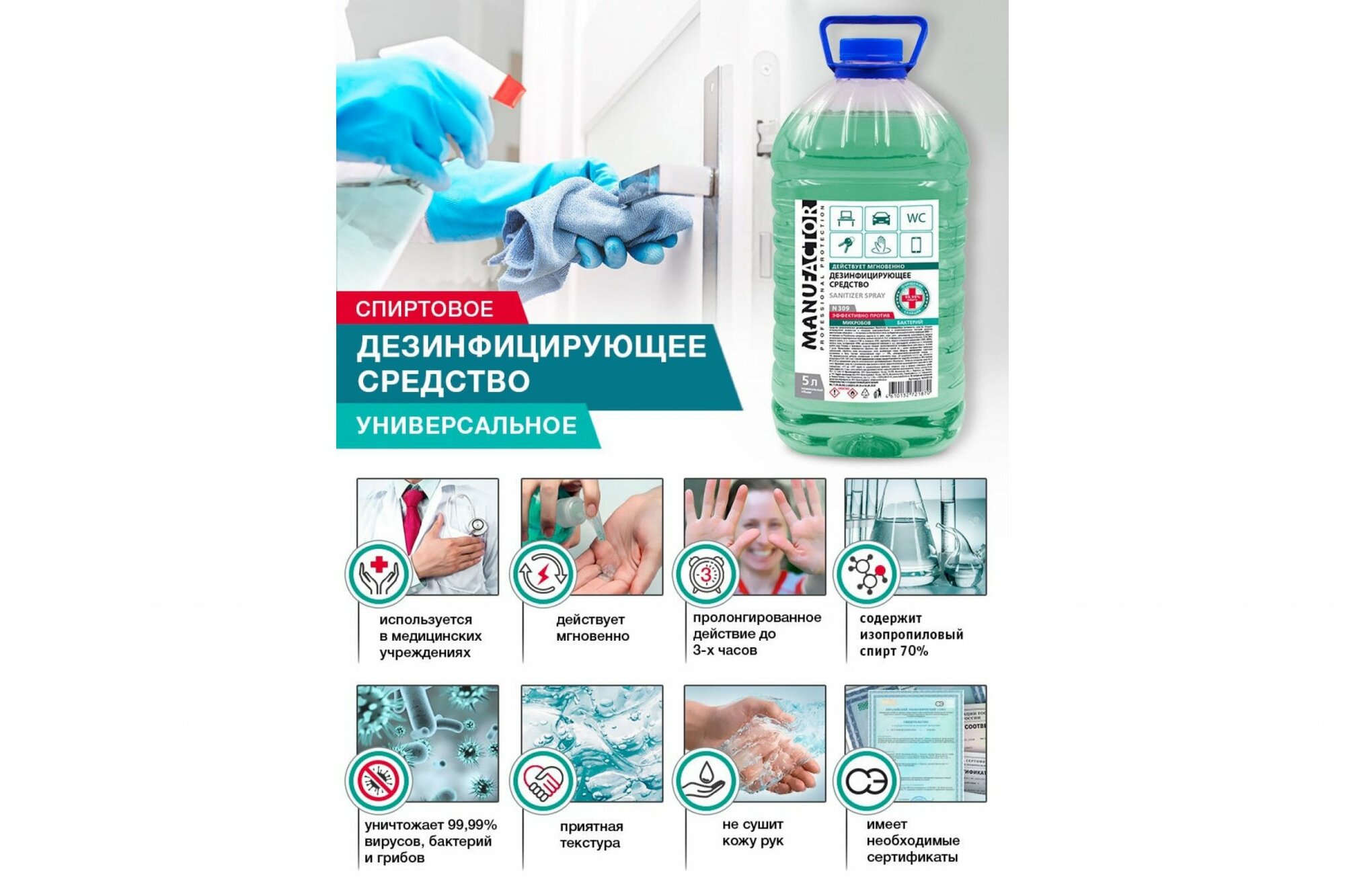 Купить Антисептик для рук и поверхностей спиртосодержащий (70%) 5 л MANUFACTOR, дезинфицирующий, жидкость., N 309