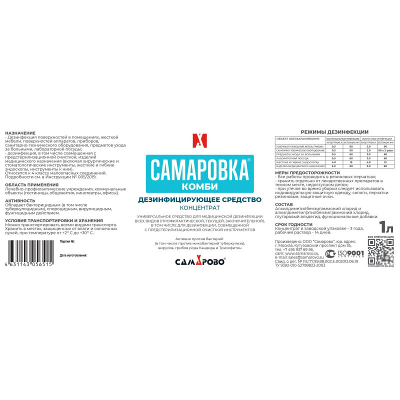 Средство для дезинфекции Самаровка Комби, 1л (концентрат)