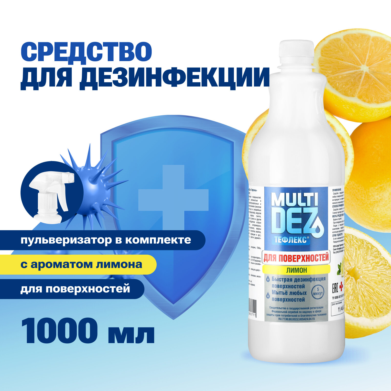 Мультидез, Спрей для мытья и дезинфекции поверностей Лимон, 1000 мл интересное: