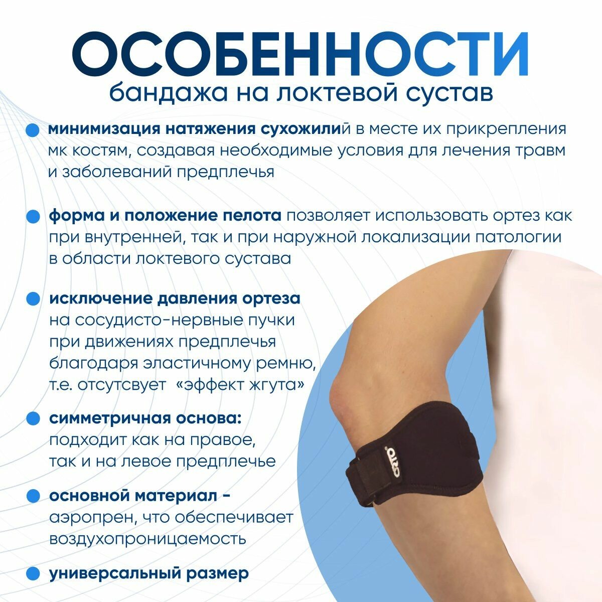 Бандаж при эпикондилите Orto BEL 300, ортез на локоть, спортивный, фиксирующий, послеоперационный