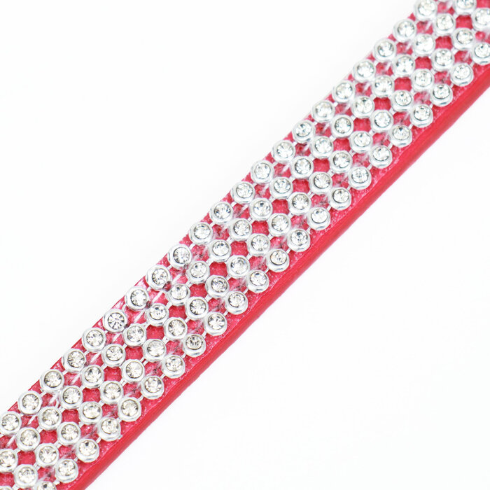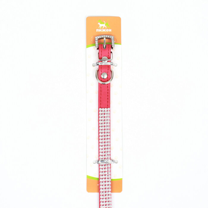 Ошейник со стразами для собак в 4 ряда и стразы на пряжке, 40 х 1,5 см, розовый 1039619