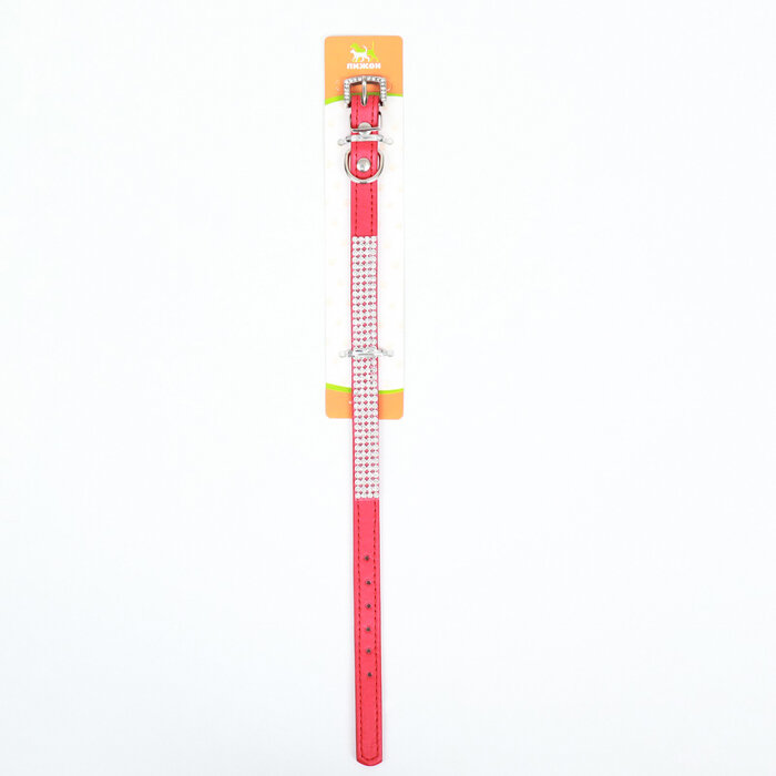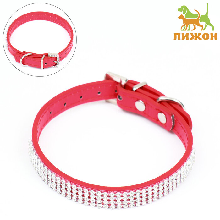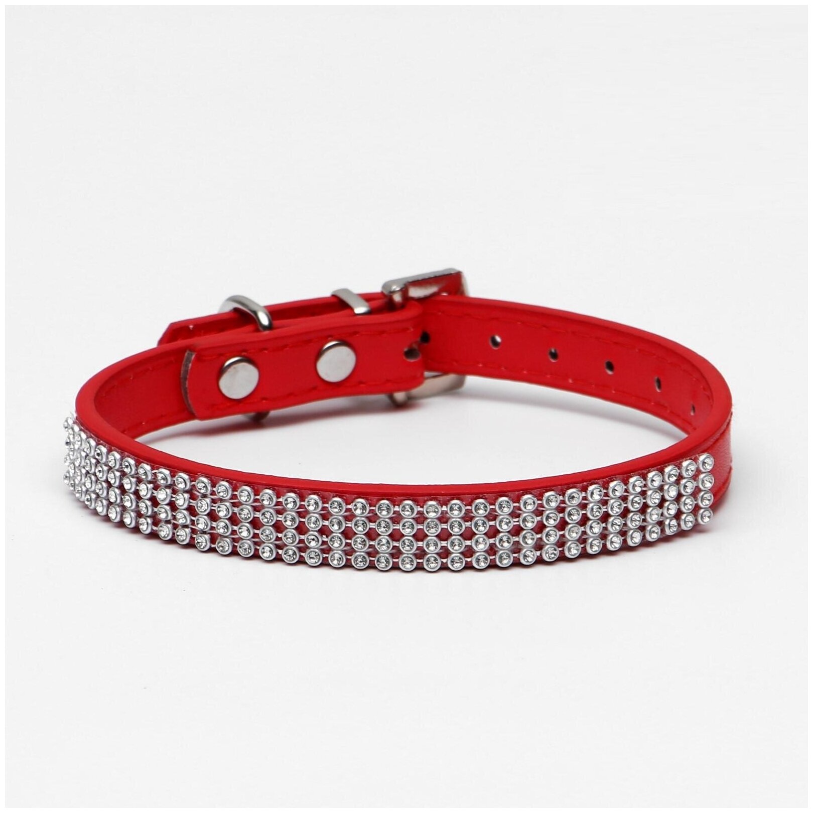 Пижон Ошейник со стразами в 4 ряда и стразы на пряжке, 40 х 1,5 см, красный