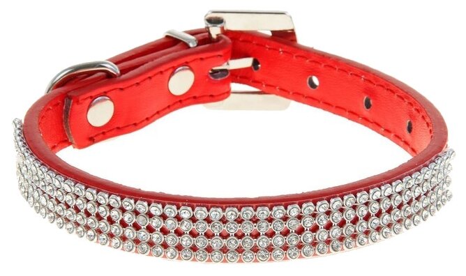 Ошейник со стразами в 4 ряда и стразы на пряжке, 40 х 1,5 см, красный