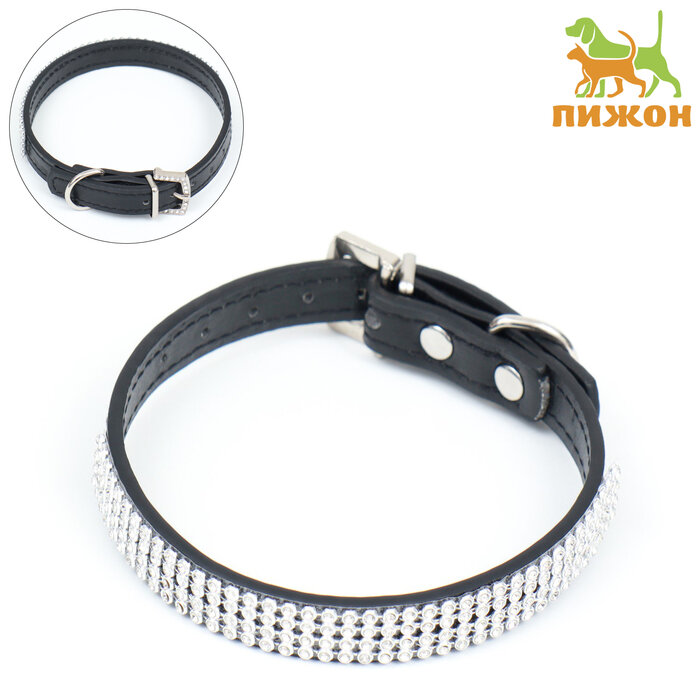 Ошейник для собак Пижон со стразами в 4 ряда и стразы на пряжке, 40х1,5 см, черный