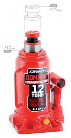 Домкрат Бутылочный Autoprofi, Гидравлический, 12 Тонн., Защита От Перегруза, Высота Подъёма 210 - 415 Мм. AUTOPROFI арт. DG-12