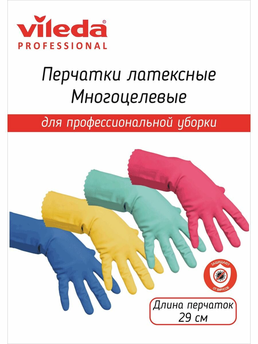 Перчатки латексны, Vileda Professional, Виледа MultiPurpose Многоцелевые, размер М, 1 пара, красные