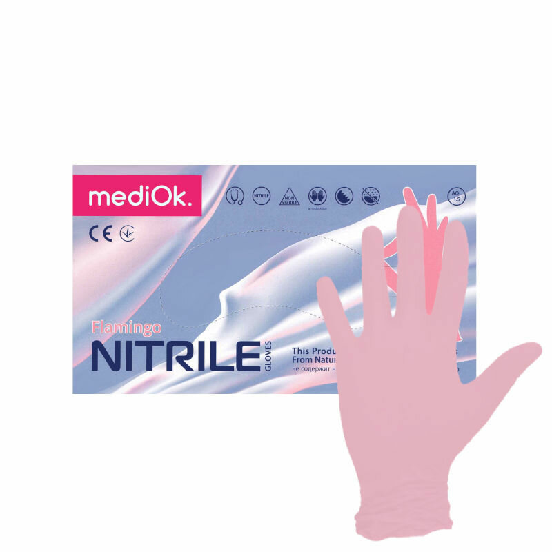 Перчатки нитриловые смотровые mediOk Flamingo розовый (50 пар, S)