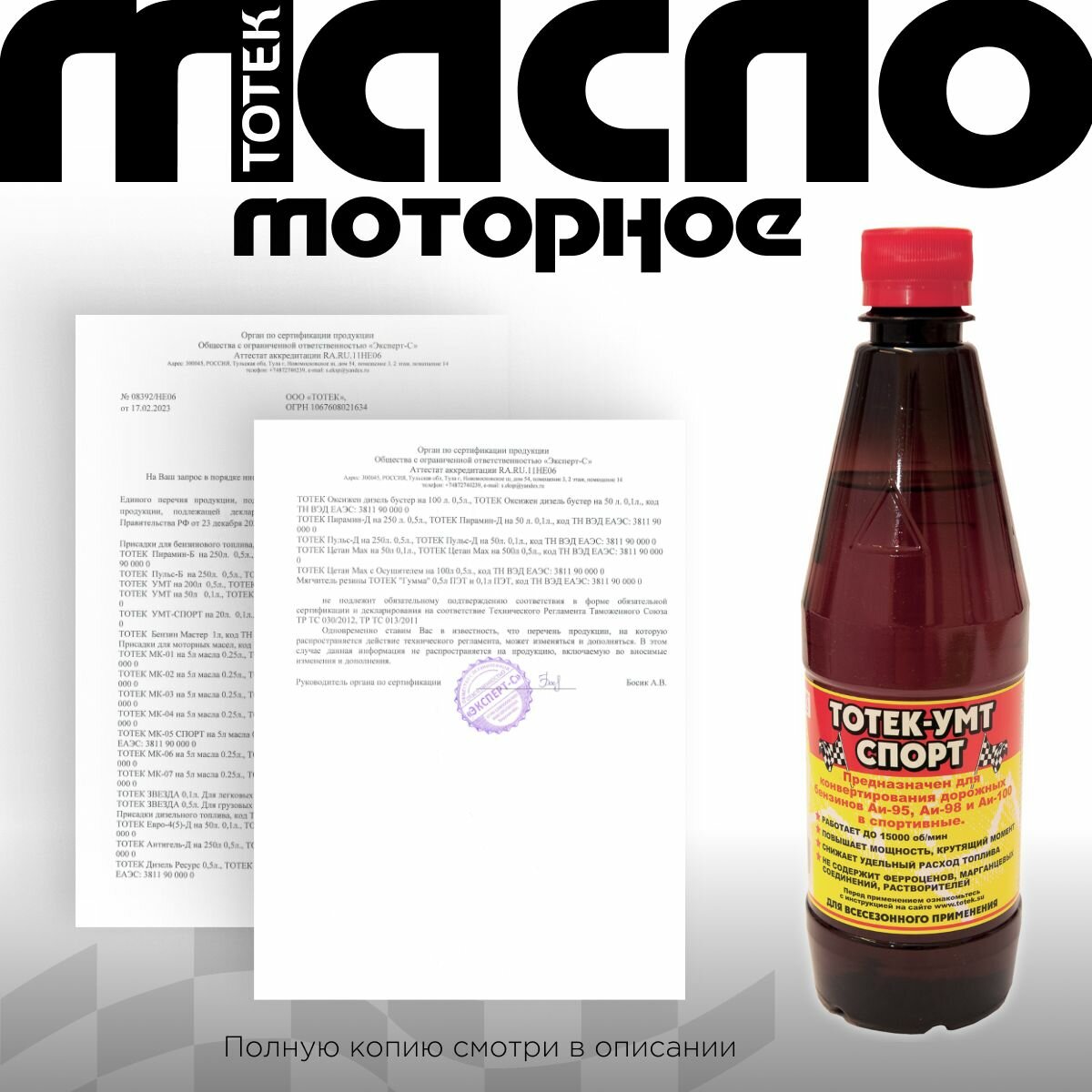 Усилитель Моторного Топлива Тотек умт-спорт на 100л (0,5л)