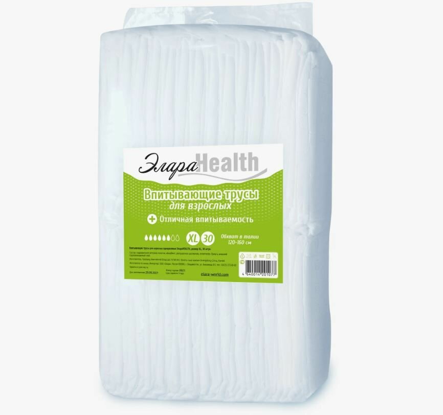 "Подгузники-трусики для взрослых ЭлараHealth, размер XL (120-160 см), 30 шт."