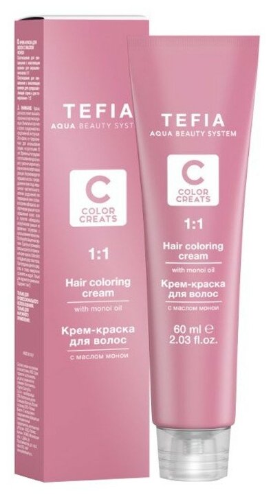 Tefia Color Creats крем-краска для волос Hair Coloring Cream with Monoi Oil, Т 10.21 Тонер ваниль, 60 мл
