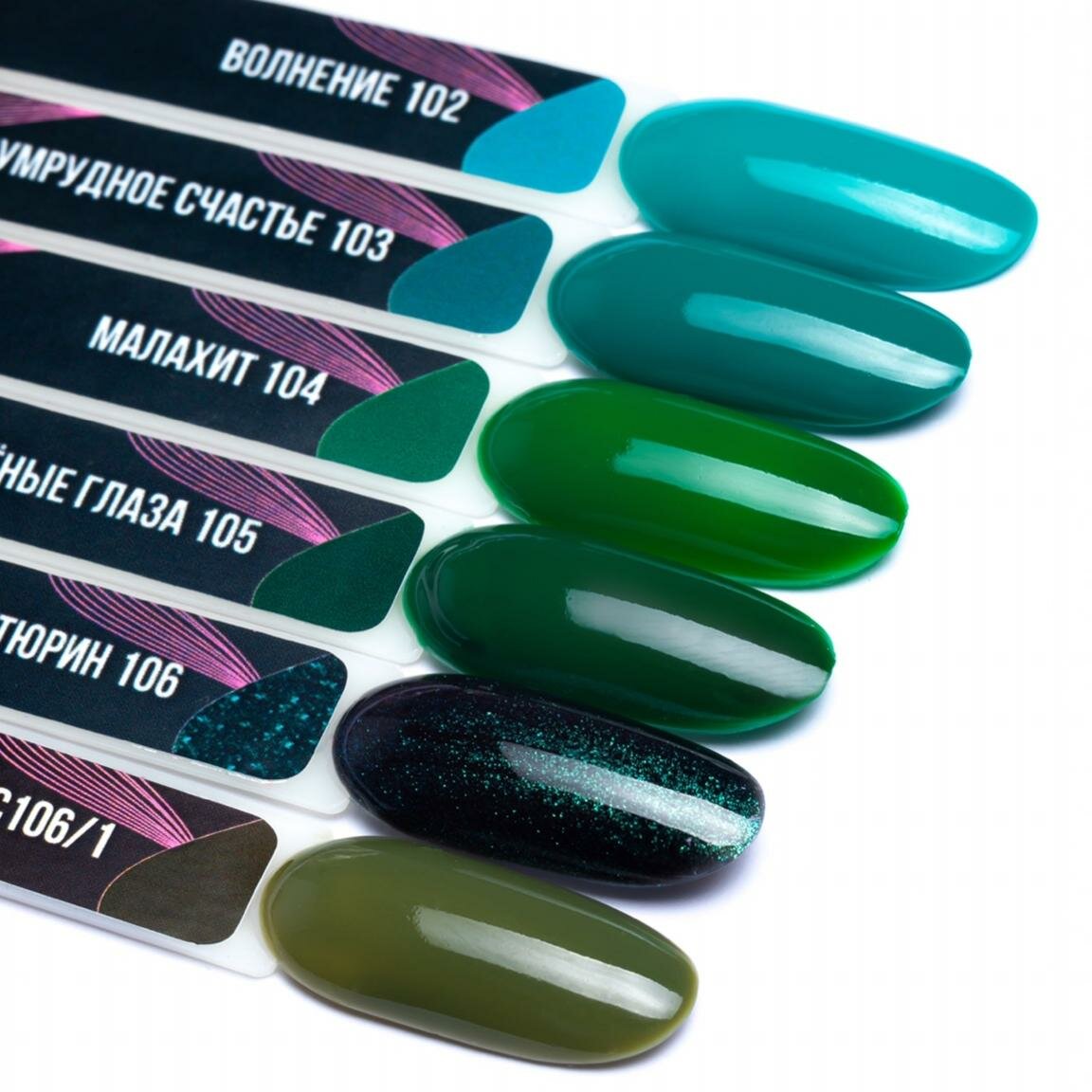 Serebro гель лак для ногтей зеленый "Авантюрин" для маникюра и педикюра №106, 11 мл