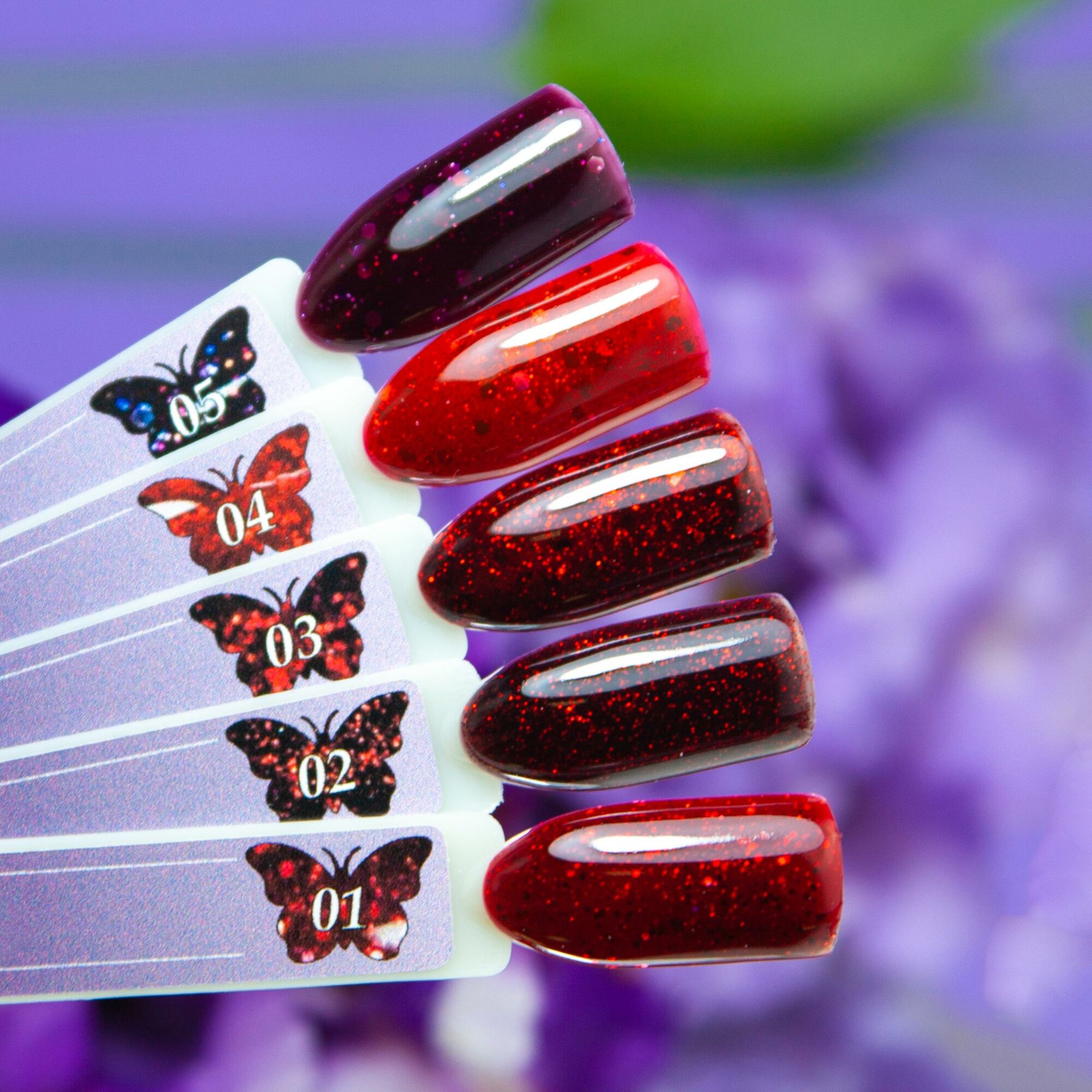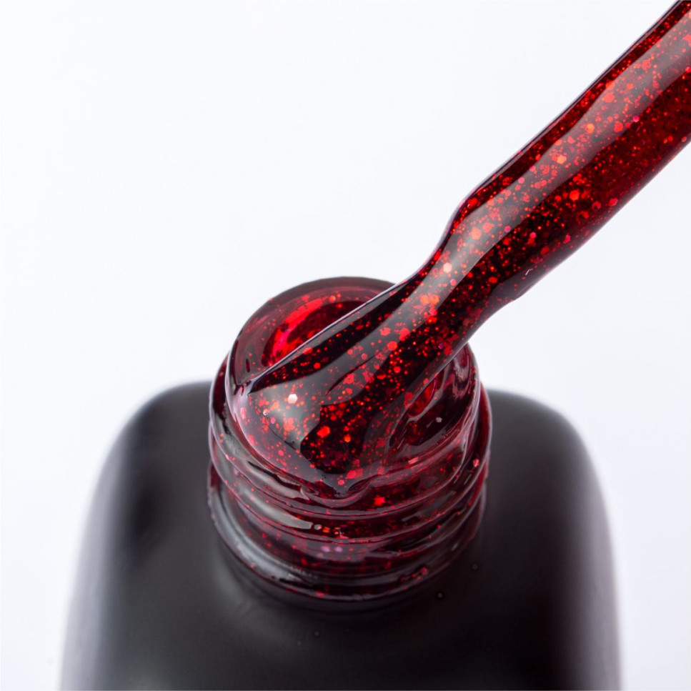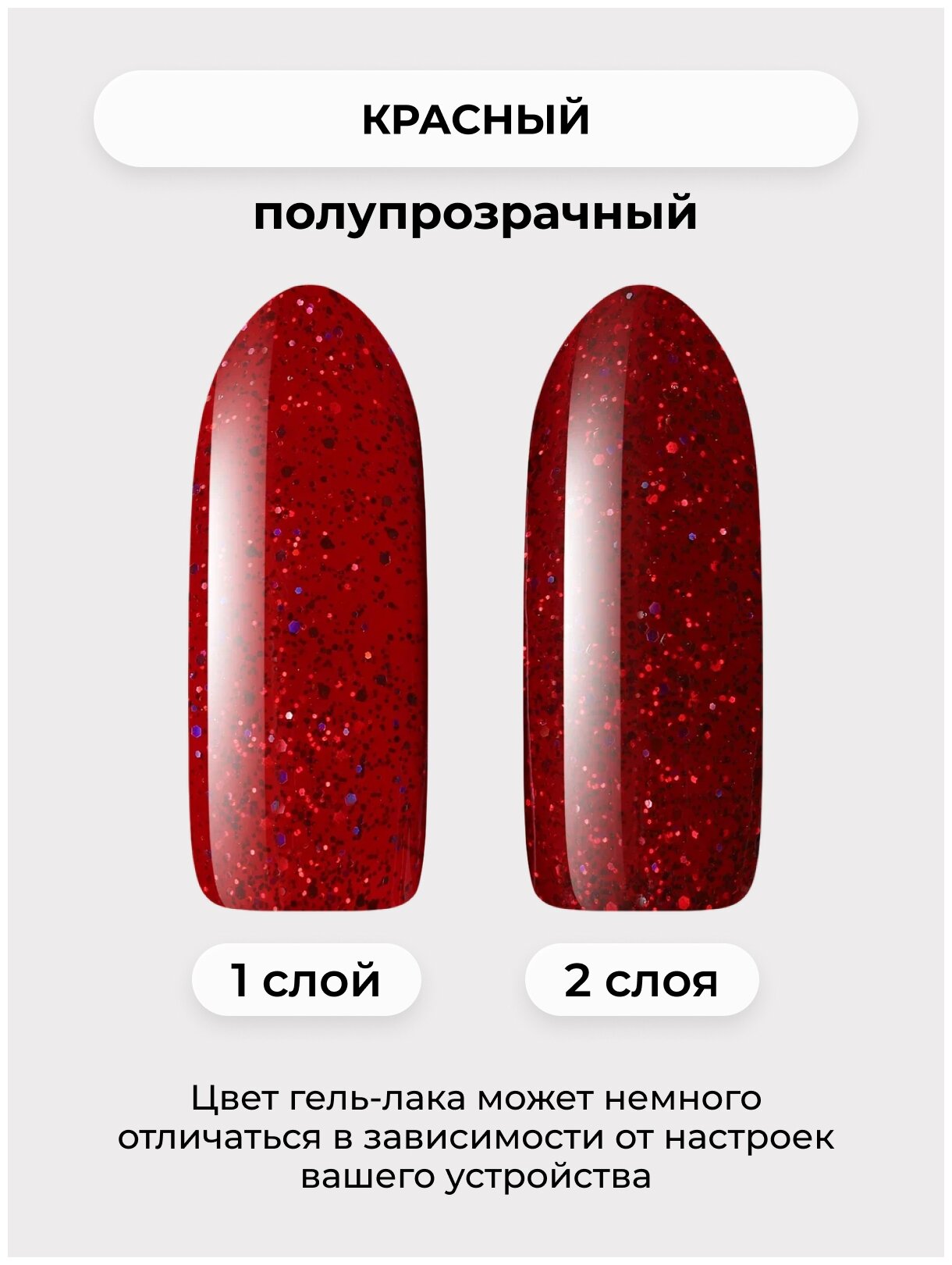 Гель-лак для ногтей Serebro с блестками, полупрозрачный гипоаллергенный, красный, 11 мл