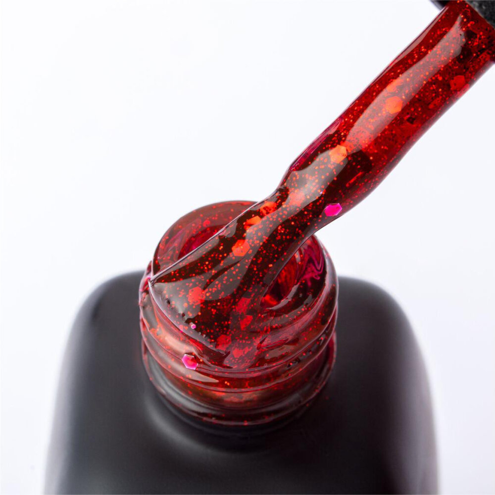 Гель-лак для ногтей Serebro с блестками, полупрозрачный гипоаллергенный, красный, 11 мл