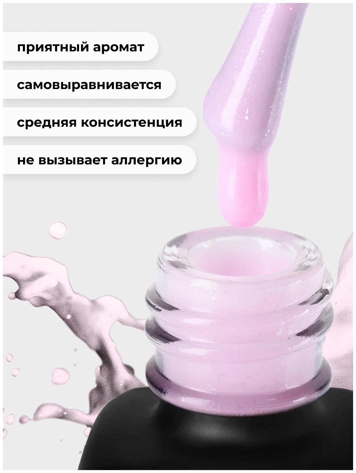 Гель-лак для ногтей Serebro с блестками, плотный, гипоаллергенный, бледный розовый, 11 мл