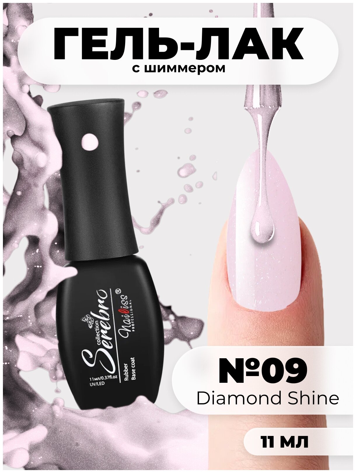 Гель-лак для ногтей Serebro Diamond Shine №09 с шиммером для маникюра, 11 мл