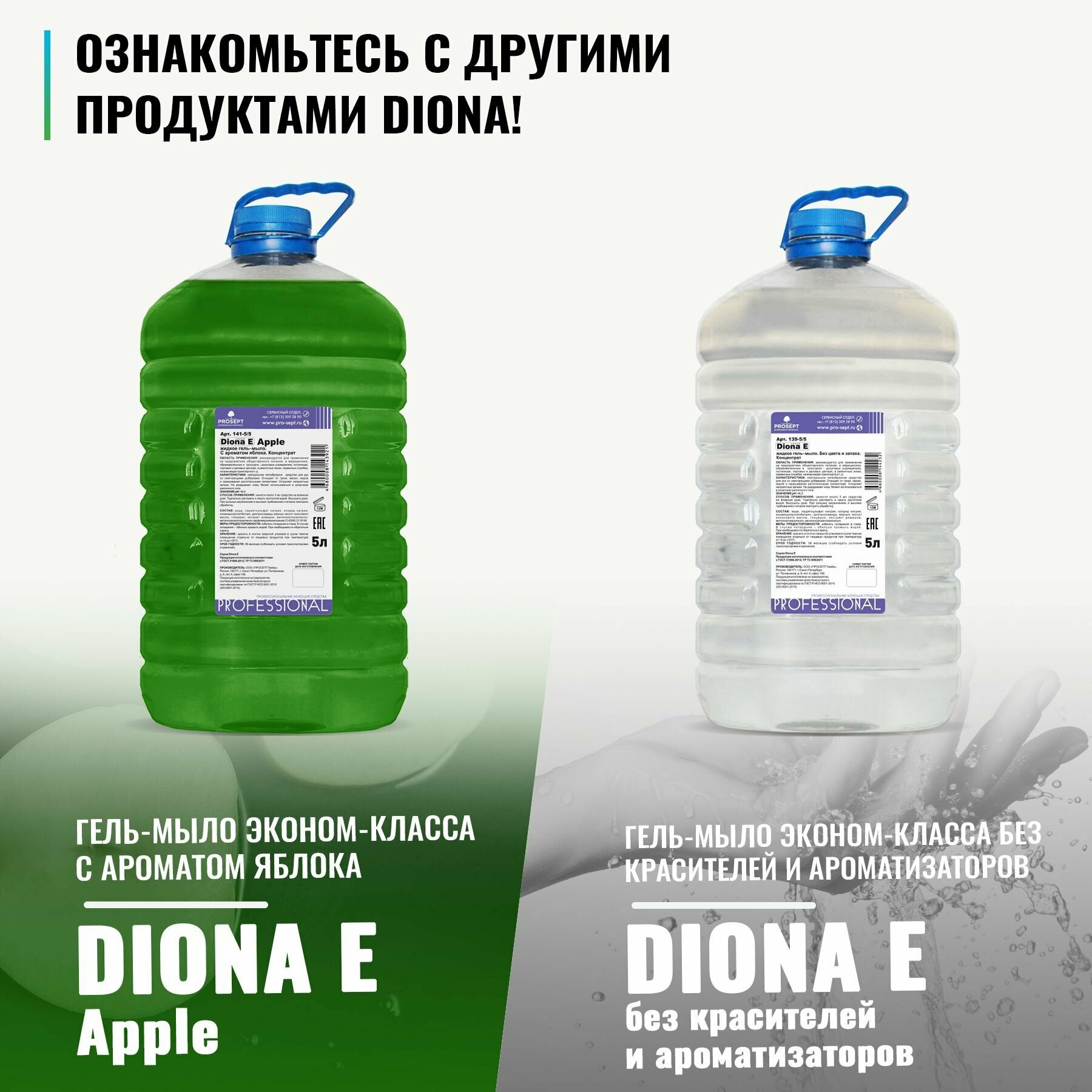 Жидкое гель-мыло эконом-класса Prosept Diona E (5л) цитрус (ПЭТ)