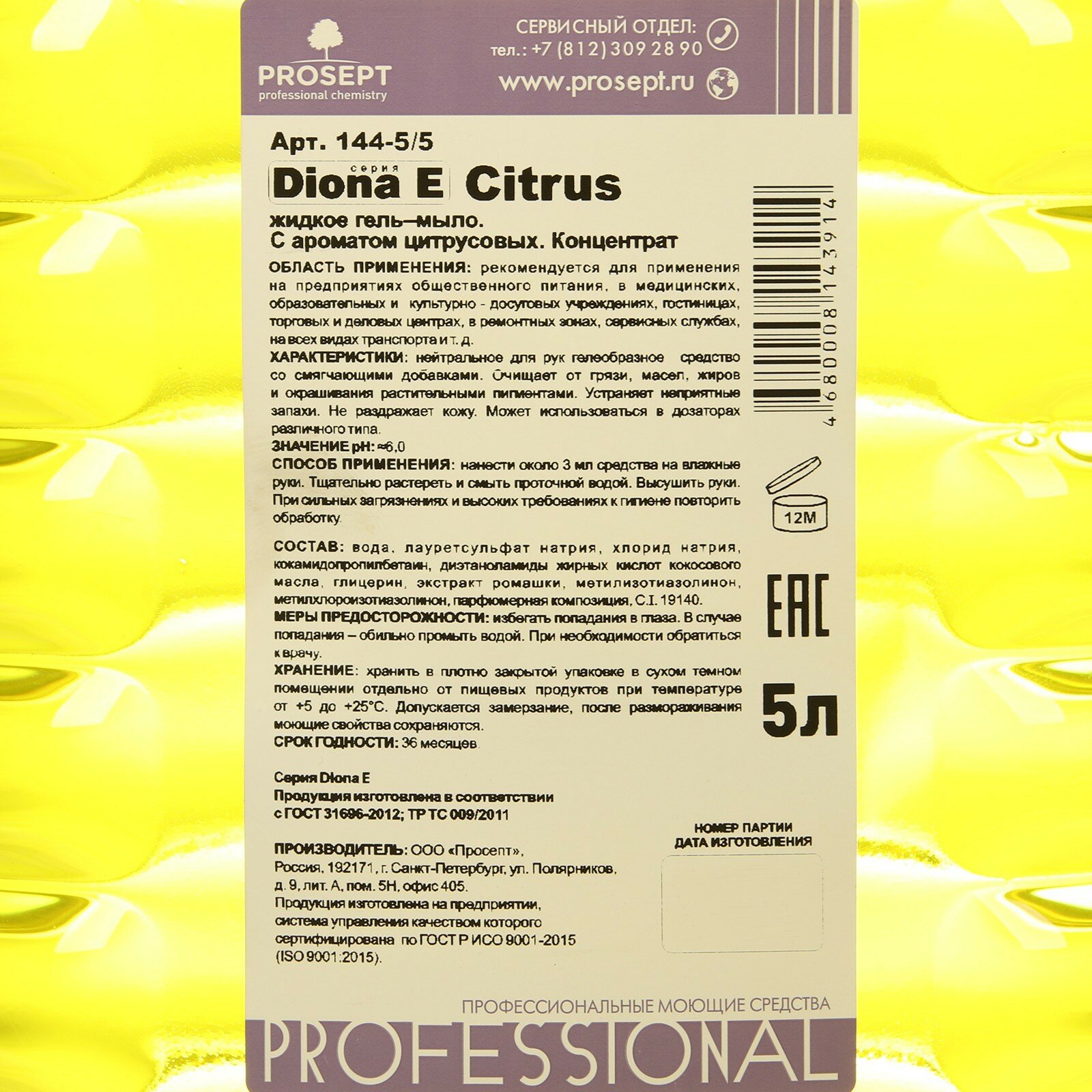 Купить Жидкое мыло Prosept Diona Сitrus Е цитрусовый аромат, 5л, ПЭТ