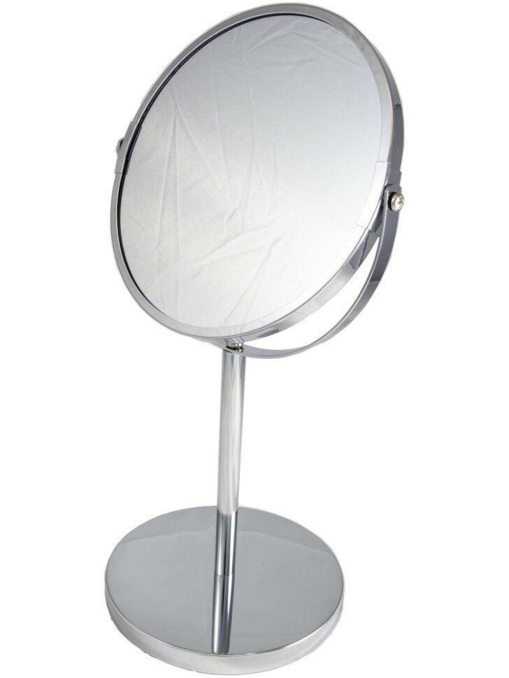 Зеркало настольное круглое железное двустороннее разного увеличения 16 см