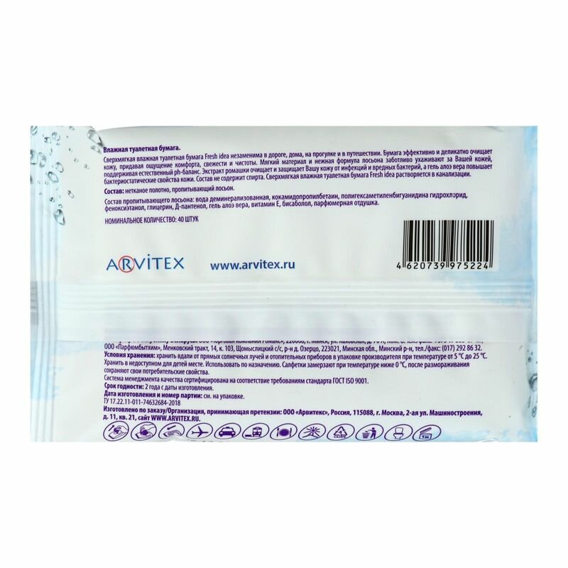 Влажная туалетная бумага Fresh idea, растворяющаяся, 13 x 18 см, 40 шт интересное: