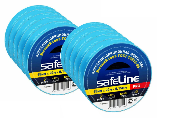 Изолента ПВХ синяя 15мм 20м Safeline | код 9365 | SafeLine (10шт.в упак.)