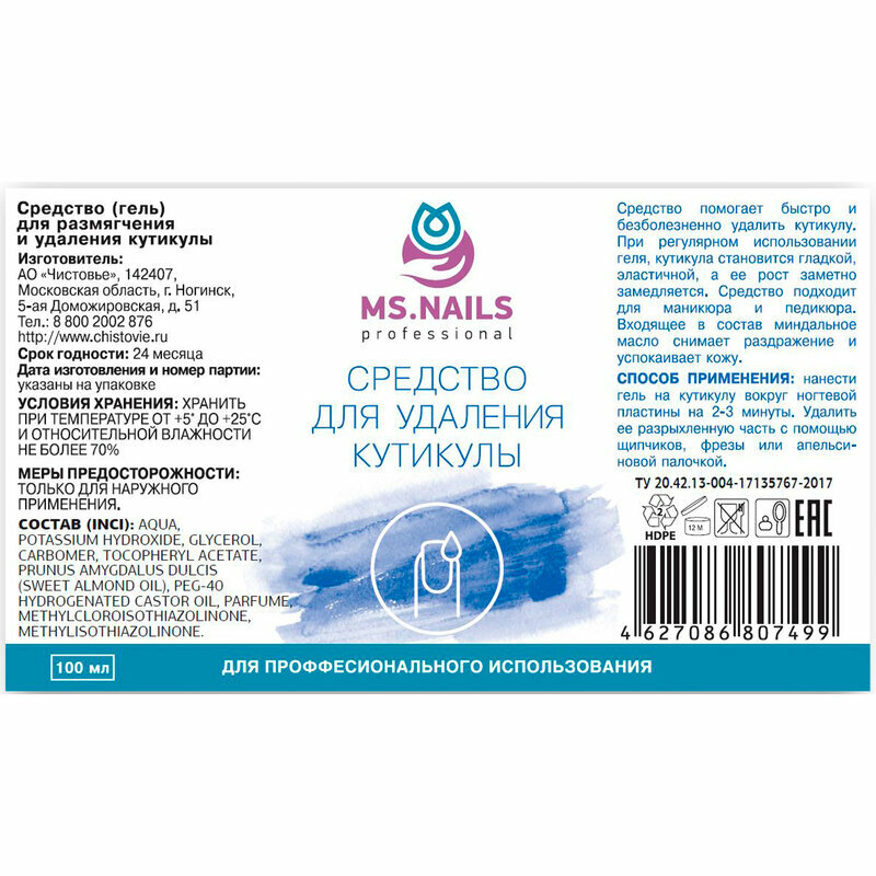 Средство для размягчения и удаления кутикулы MS NAILS Чистовье, 100 мл