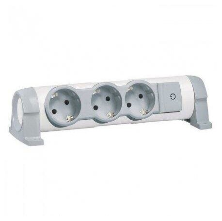 Колодка удлинителя 3 гнезда с выключателем с заземлением белый/серый поворотный блок (Legrand), арт. 694624