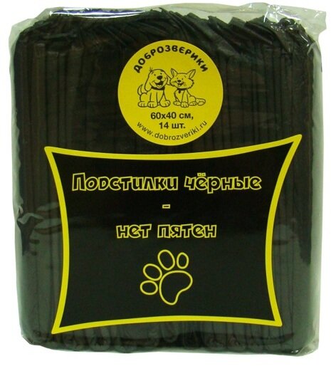 Купить Доброзверики пеленки впитывающие для животных с суперабсорбентом черные 60 х 90 см (10 шт)