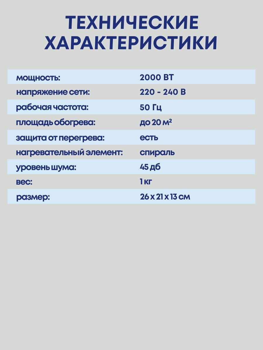 | Макс. мощность обогрева | 2000 Вт |