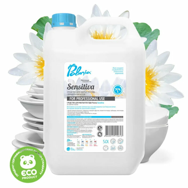 Palmia Sensitiva гипоаллергенное средство для мытья посуды, овощей и фруктов (канистра) 5л.
