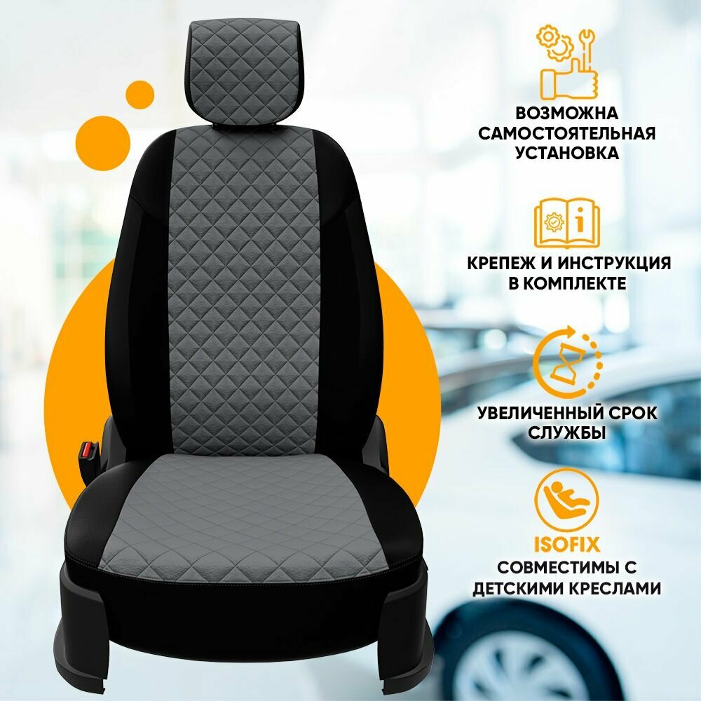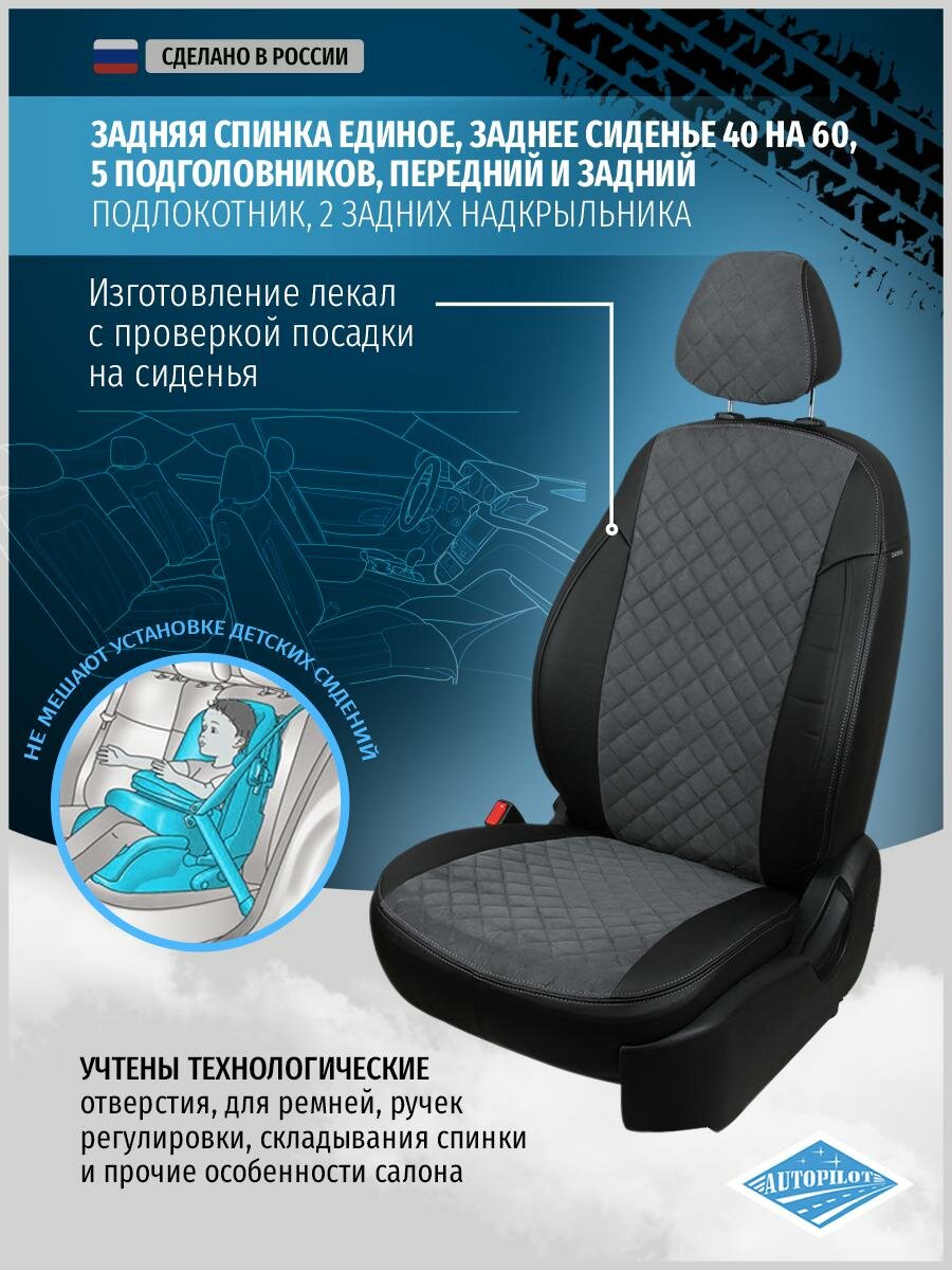 Купить Комплект чехлов АВТОПИЛОТ из алькантары для Toyota Hilux 8, ромб, черный/серый