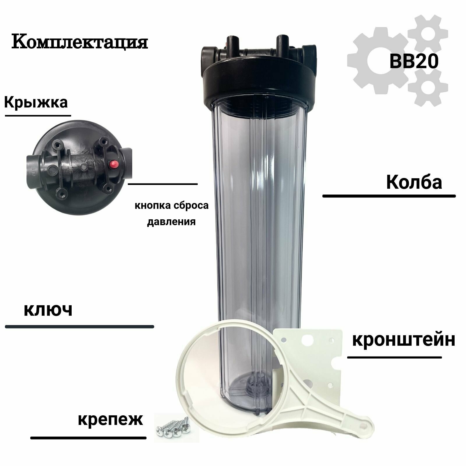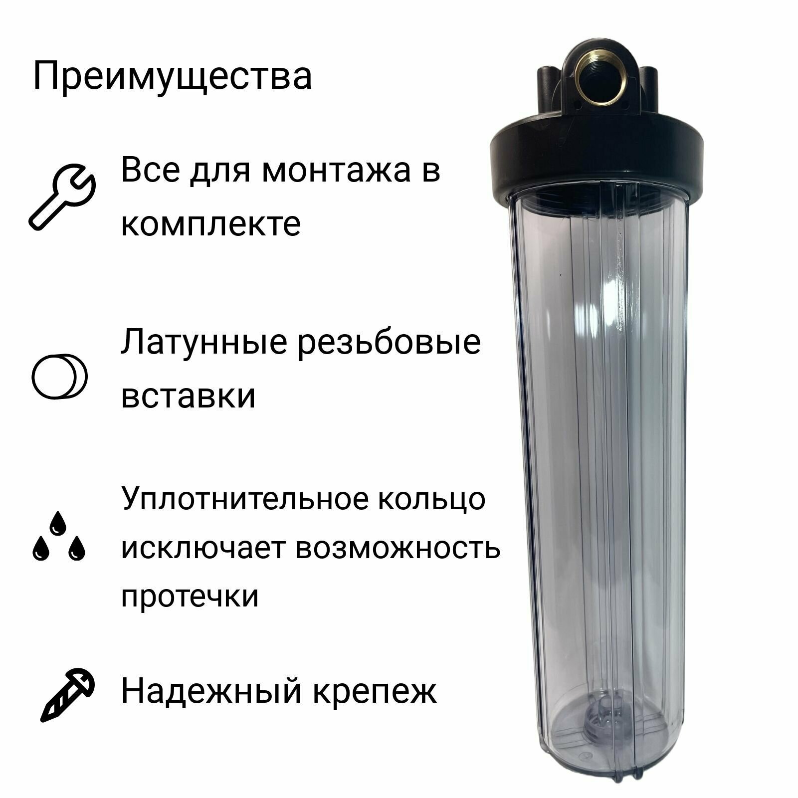 Фильтр магистральный Kristal Корпус Big Blue 20 T 1 бесцветный/черный интересное: