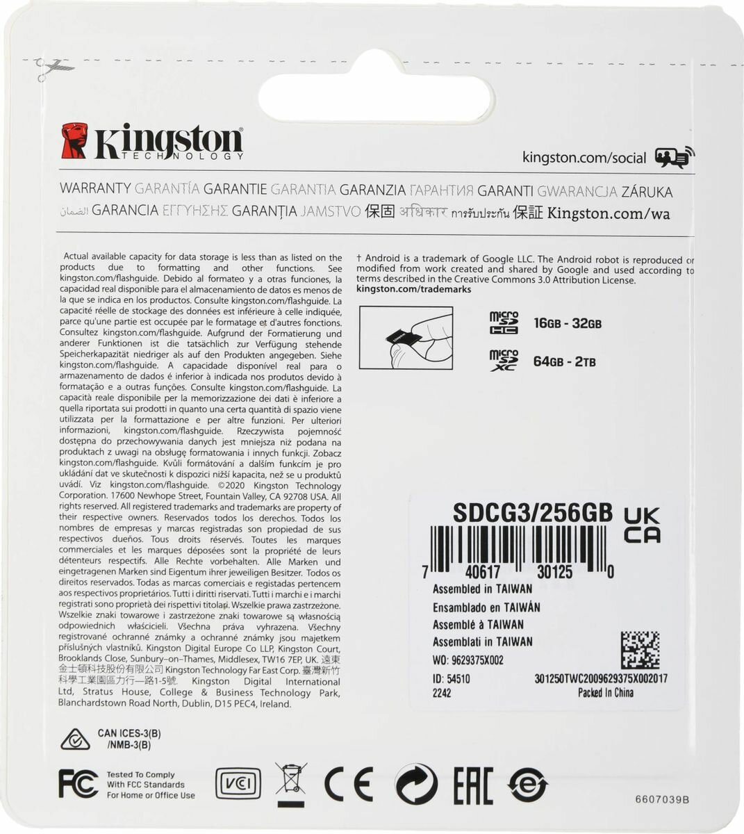 Карта памяти microSDXC 256GB KINGSTON Canvas Go Plus UHS-I U3, 170 Мб/с (class 10), SDCG3/256GB (арт. 513647)