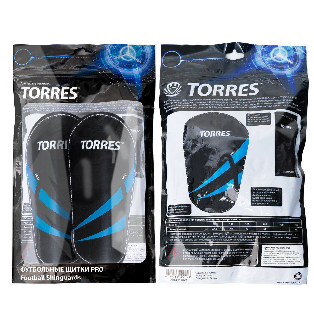 Щитки TORRES Pro, размер L (175 см), арт. FS1608L