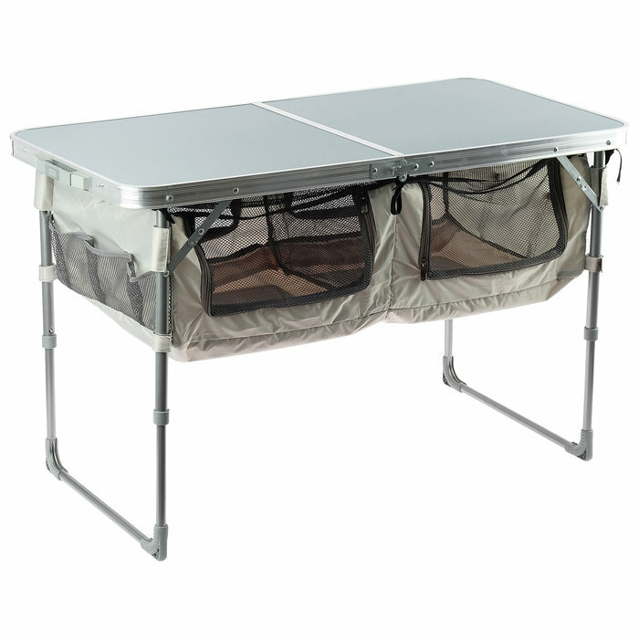 | Плюсы: | Оказалось, такой стол просто незаменимая вещь. Во многом благодаря полочкам и кармашкам. Всю посуду, продукты и мелочи можно убрать в них. Полочки крепятся к столу липучками и завязками. На ровной поверхности стол стоит вполне устойчиво. Удобно складывать и переносить, в багажник влезает идеально. |
