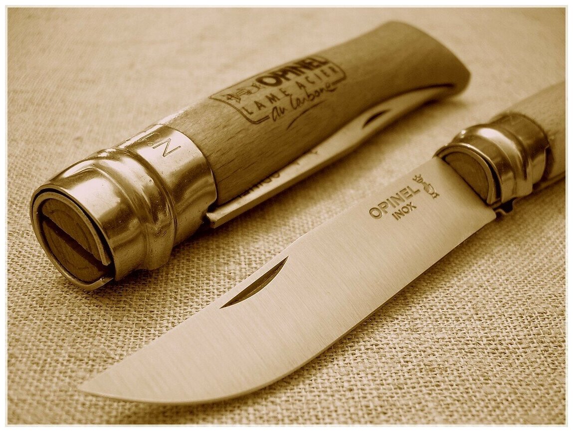 Ножи всегда разбираю, зашкуриваю острые кромки на ручке. Потом, или крашу , или пропитываю маслом, или раствором приготовленной эпоксидной смолы в ацетоне, в зависимости от целей использования. Лезвия INOX полирую, CARBON травлю лимонной кислотой.. Это ,своего рода, регулярная медитация :) "НРАВИЦЦА" !!!!! Дома, на кухне в отдельно подставке для ножей стоят OPINEL № 10 -два № 12 - два, филейник № 15 -два , серрейтор № 12 - один. Сам пользуюсь на кухне только OPINEL :) Можно ничего с ними не делать , просто не мочить ручку водой и всё будет отлично. ВСЕМ ДОБРА ! |