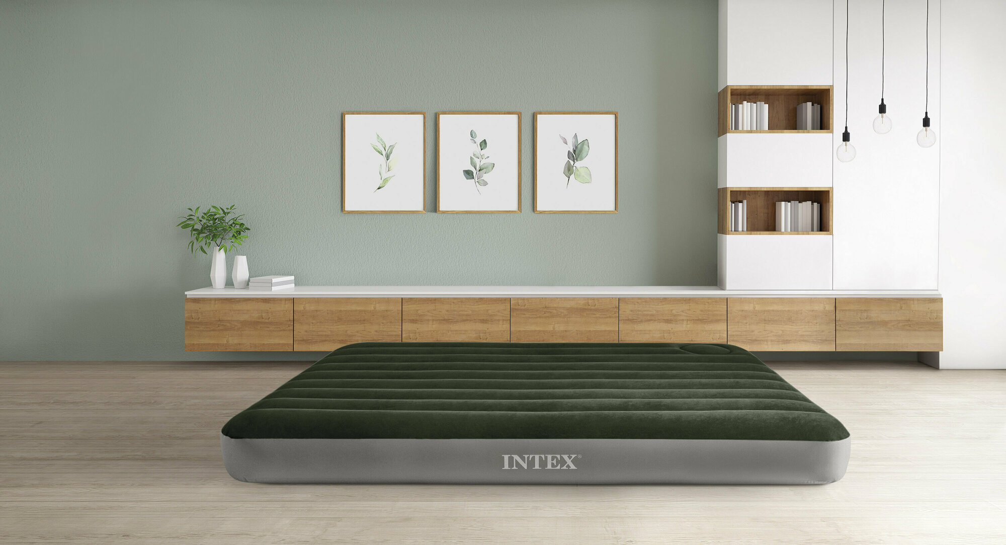 Матрас надувной Queen Downy Bed 203x152x25см ножной насос зеленый