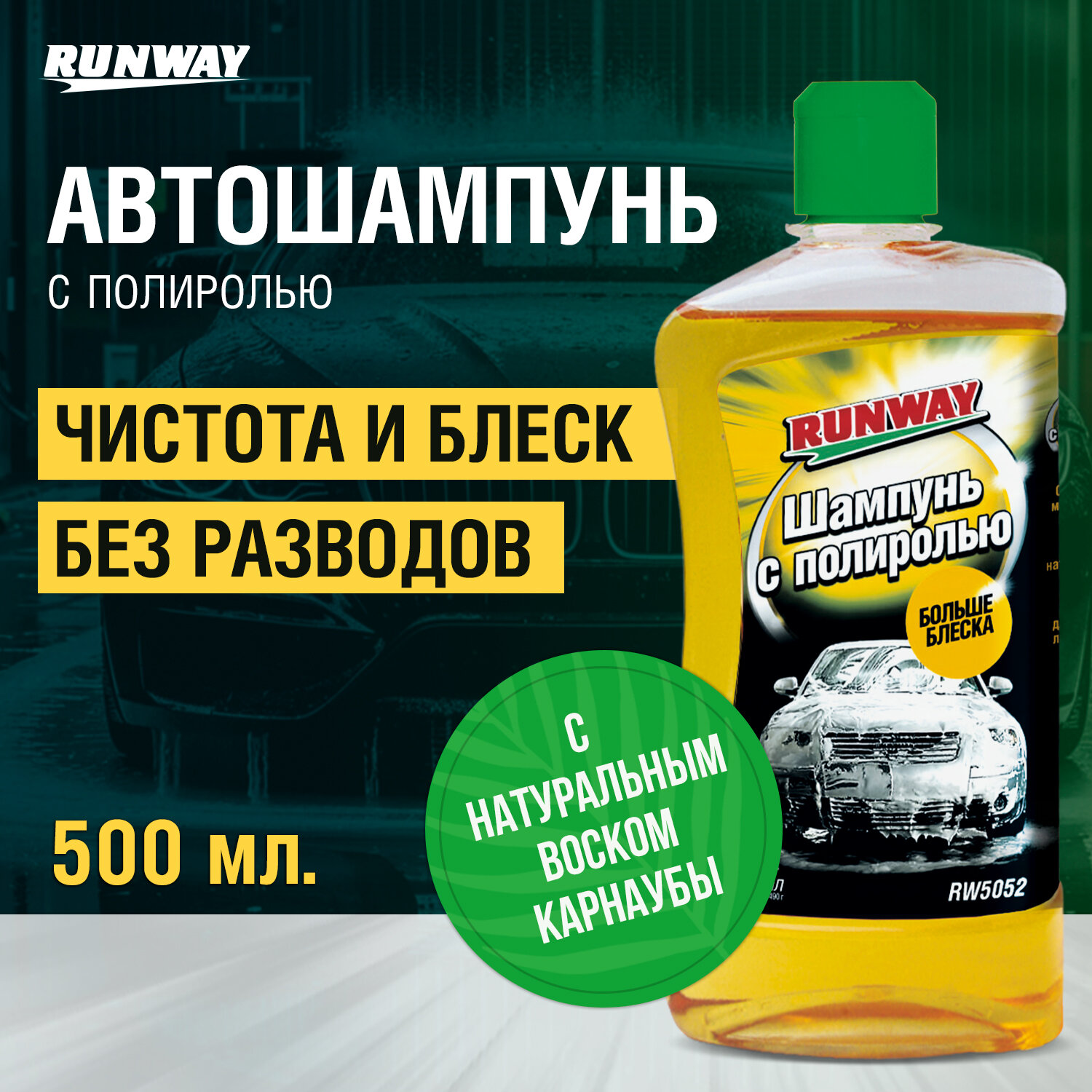 Автошампунь Runway с полиролью, 0.5 л