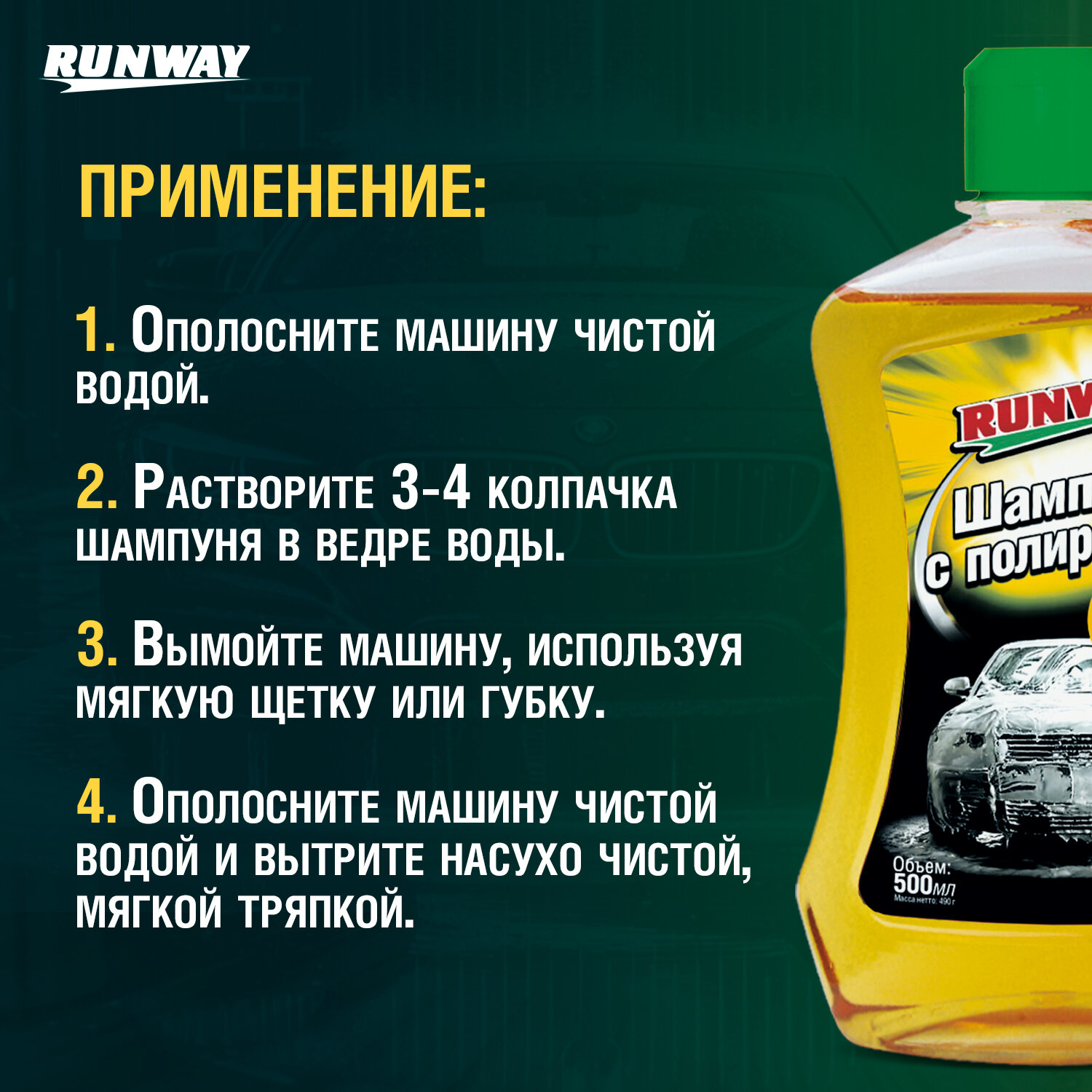 Шампунь с полиролью 500мл RUNWAY