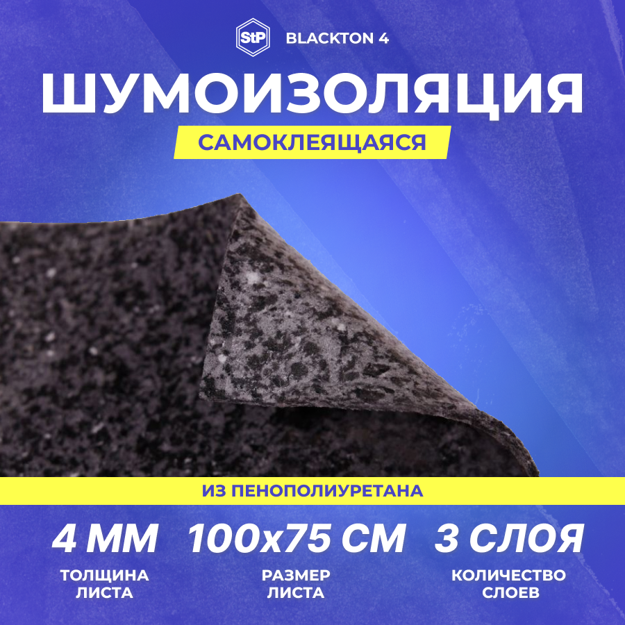 Звукопоглощающий материал StP BlackTon 4 (Багажник,Двери), 0.75 x 1 м, 1 лист