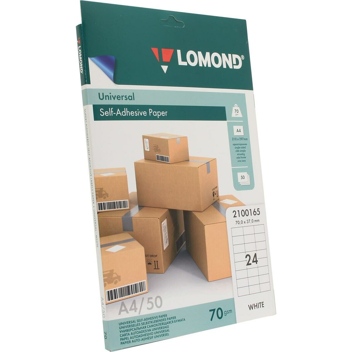Этикетка самоклеящаяся LOMOND, на листе формата А4 24 этикетки 70х37 мм, белая матовая, 50 листов (2100165)