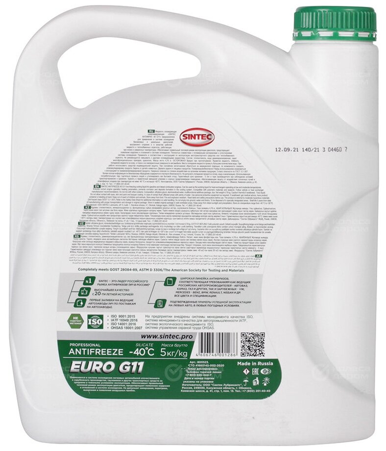 Антифриз SINTEC EURO G11 (-40) 5 л, 1 уп.
