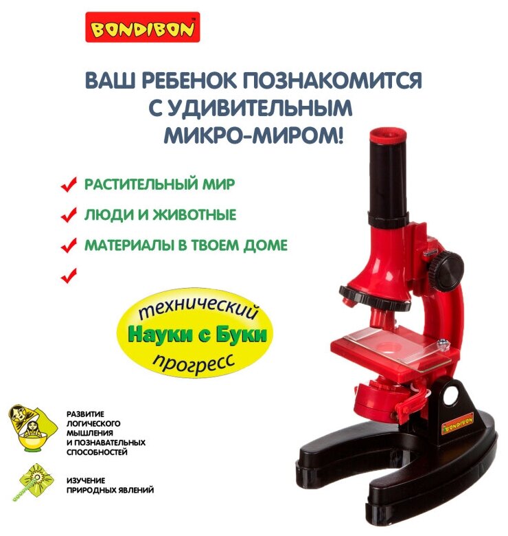 Микроскоп BONDIBON Технический прогресс науки с Буки Древний мир (ВВ4201) красный