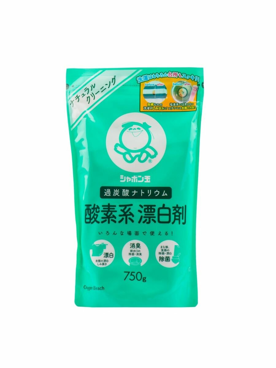 Кислородный отбеливатель пятновыводитель Shabondama 750 г. Антибактериальный гипоаллергенный Япония, Перкарбонат натрия для белого и цветного белья