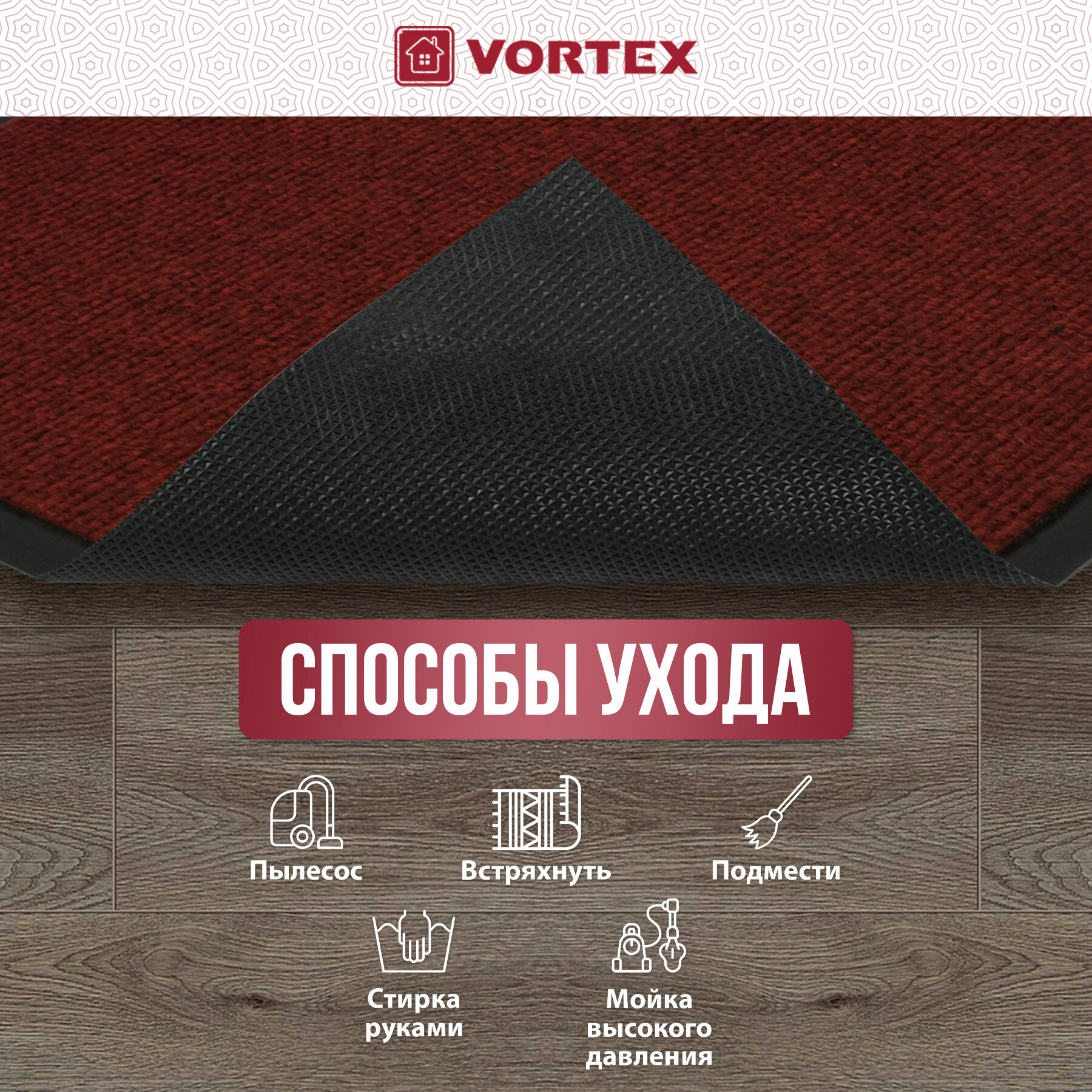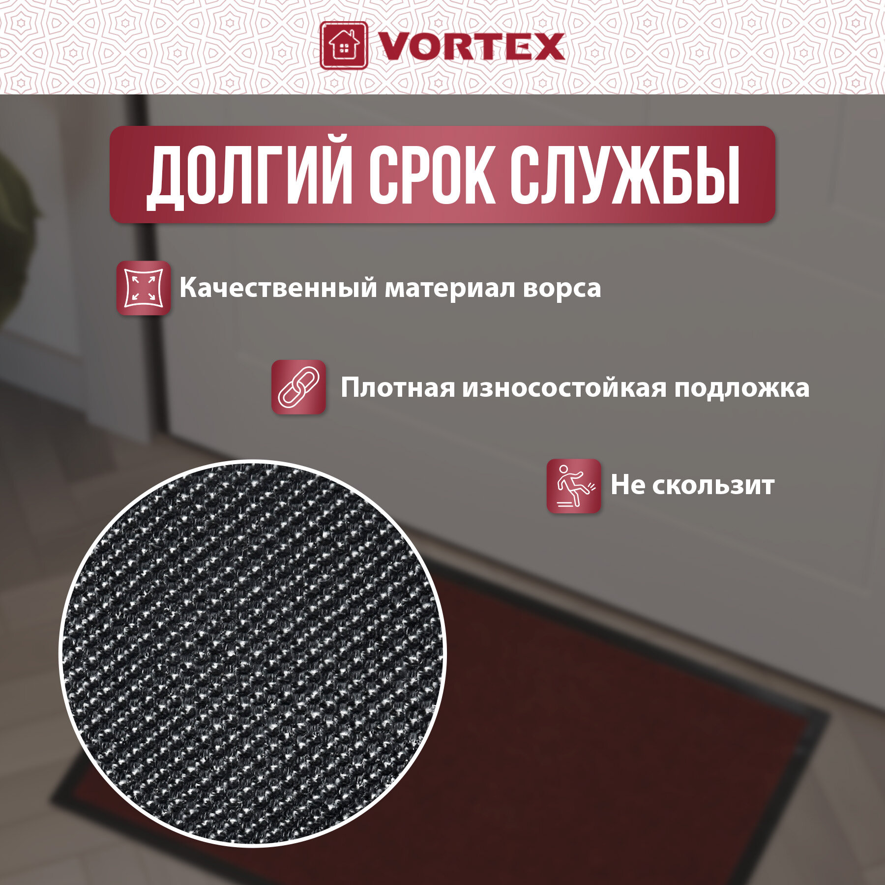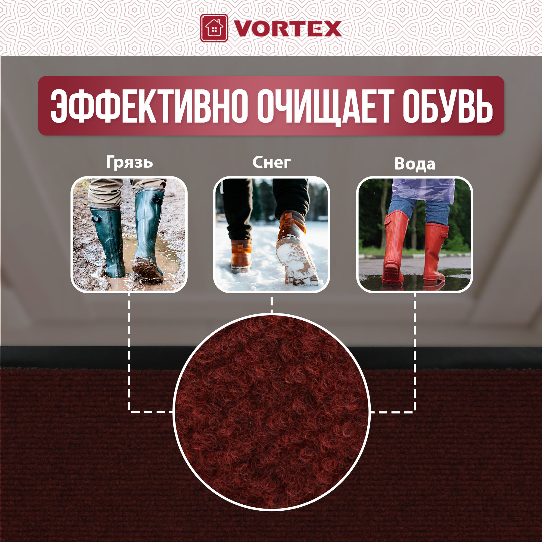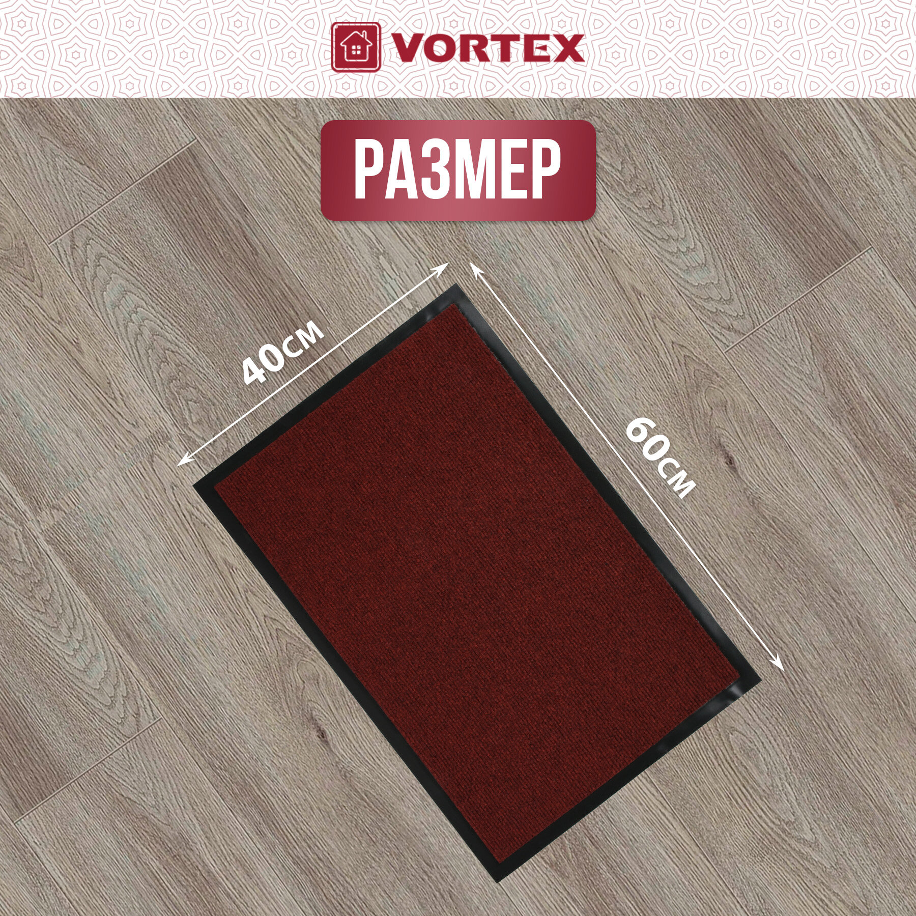 Купить Коврик влаговпитывающий, ребристый в прихожую/противоскользящий/от грязи/снега “TRIP” 40*60 см "VORTEX", красный