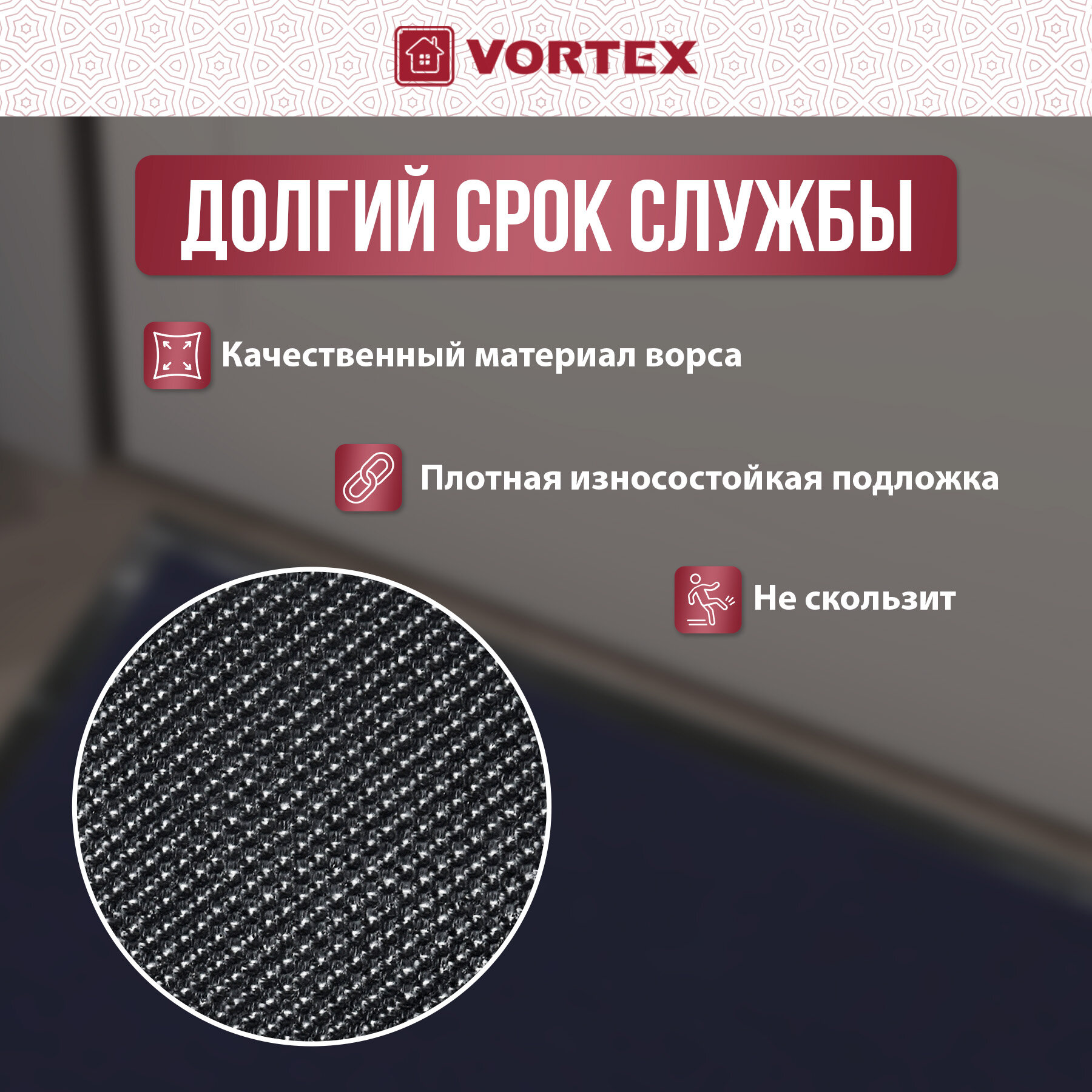 Vortex Коврик грязезащитный Vortex Trip 60х90 см чёрный 24196 ()